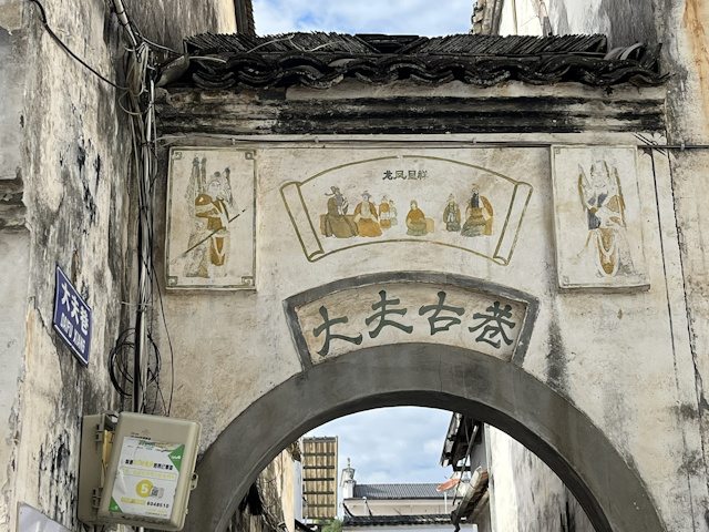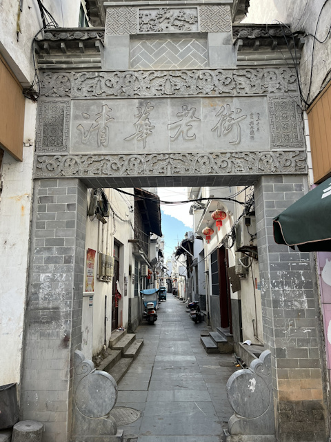 Qinghua town has one main street lined with many shops on both sides. Passing the main street and strolling along the blue-stone alleyway leading to the Rainbow Bridge, you can see a number of old residential houses. The pictures here show two small gates entering the alleyway.